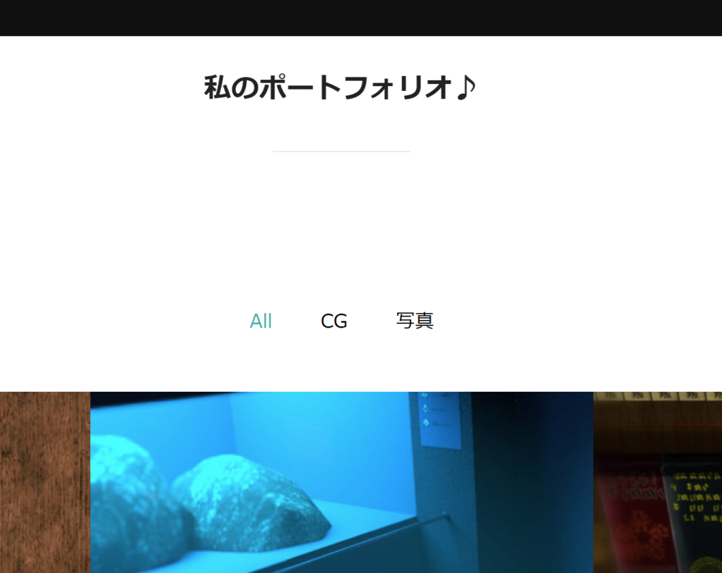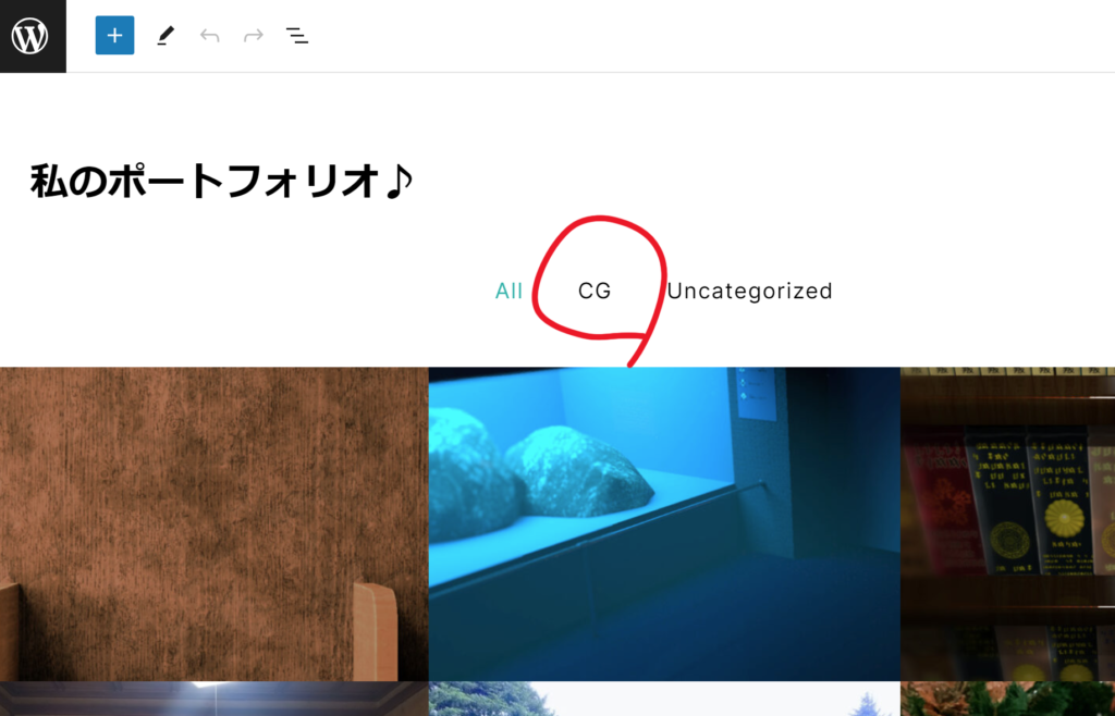 固定ページのポートフォリオページを開いて確認してみましょう。やったね!作ったカテゴリができています。